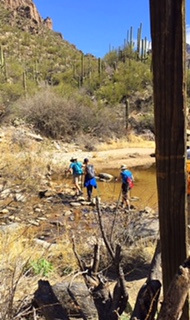 | Mike's group organizing to start the hike on Bear Canyon Trail. This trail follows Bear Creek. |